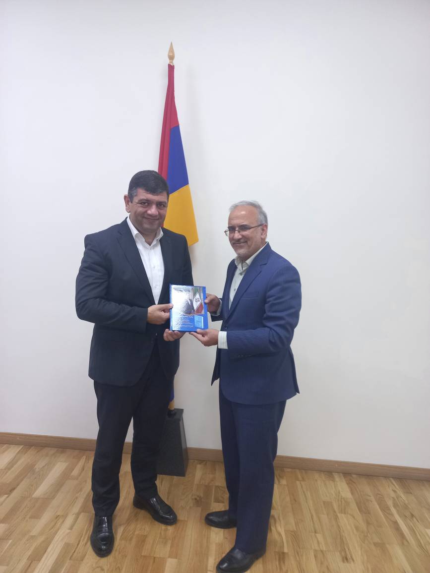 در پایان این ملاقات آقای عابدین ورامین کتاب دکتر عراقچی وزیر محترم امورخارجه با عنوان «قدرت مذاکره» که به زبان ارمنی نیز ترجمه شده بود را به آقای پارسیان شهردار کاپان هدیه داد.